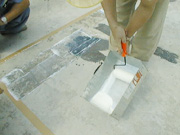 | 涂刷时就放置在盛有防水材料的罐中以防止干燥。涂刷结束后迅速用水清洗,再放入水中浸泡一晚,粘在滚子等上面的防水材料就基本上都能够脱落。请注意,防水材料干燥后不溶于水,因此要尽快清洗。