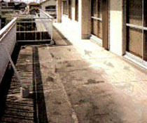这里最需要引起注意的是,不要让水蓄积。要让地面保持一定角度的倾斜。即使做不到让地面有一定倾斜,至少也不能留下洼坑。明显有洼坑的地方要用砂浆(水泥和砂、水混合而成)填埋。(砂浆施工的时候要用砂浆专用的粘结剂)